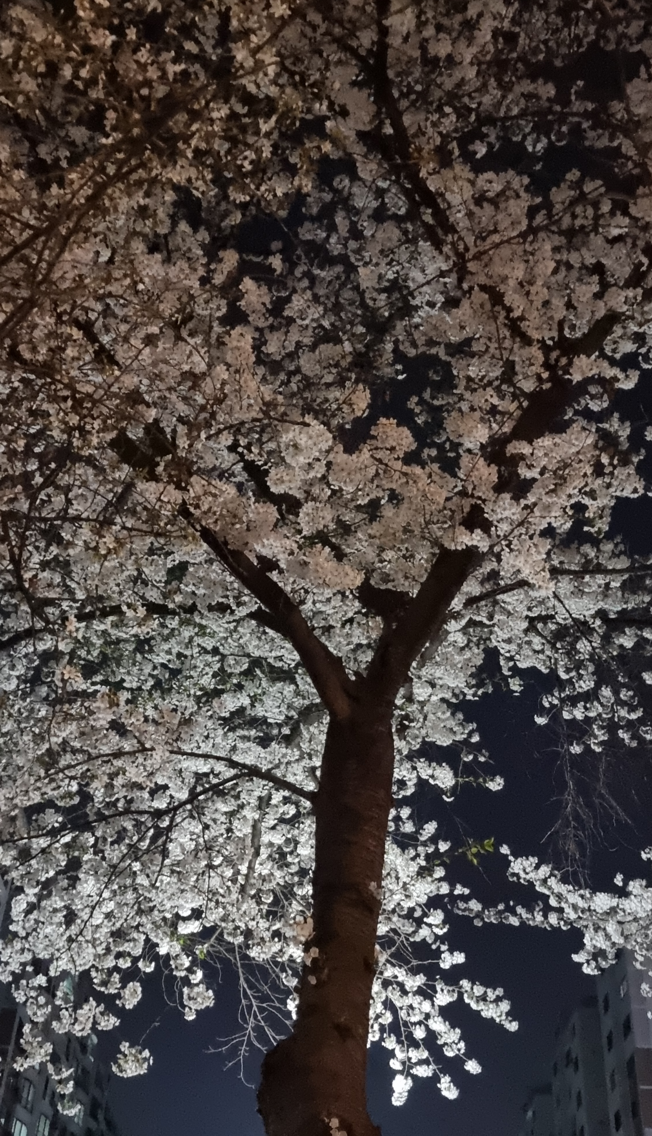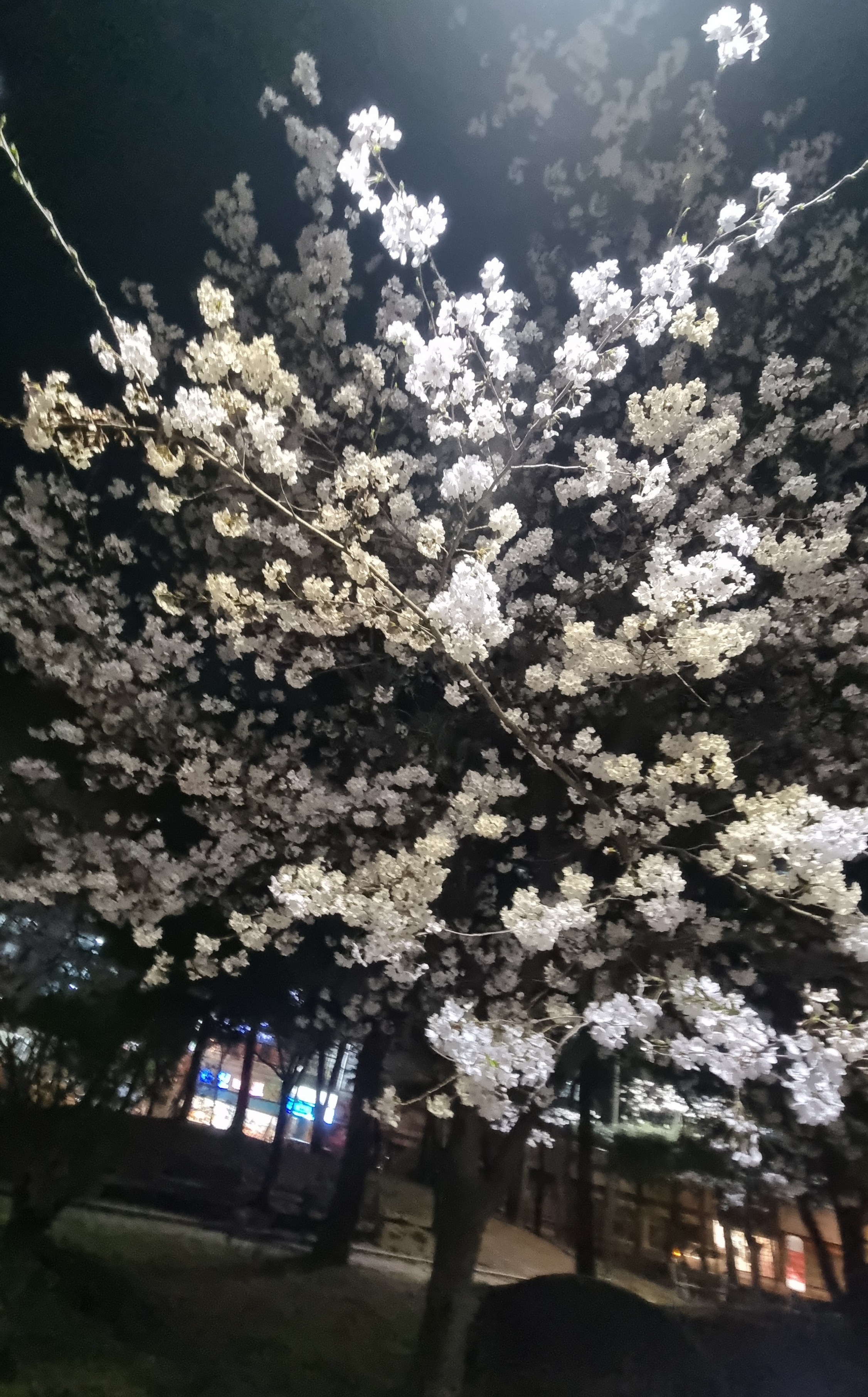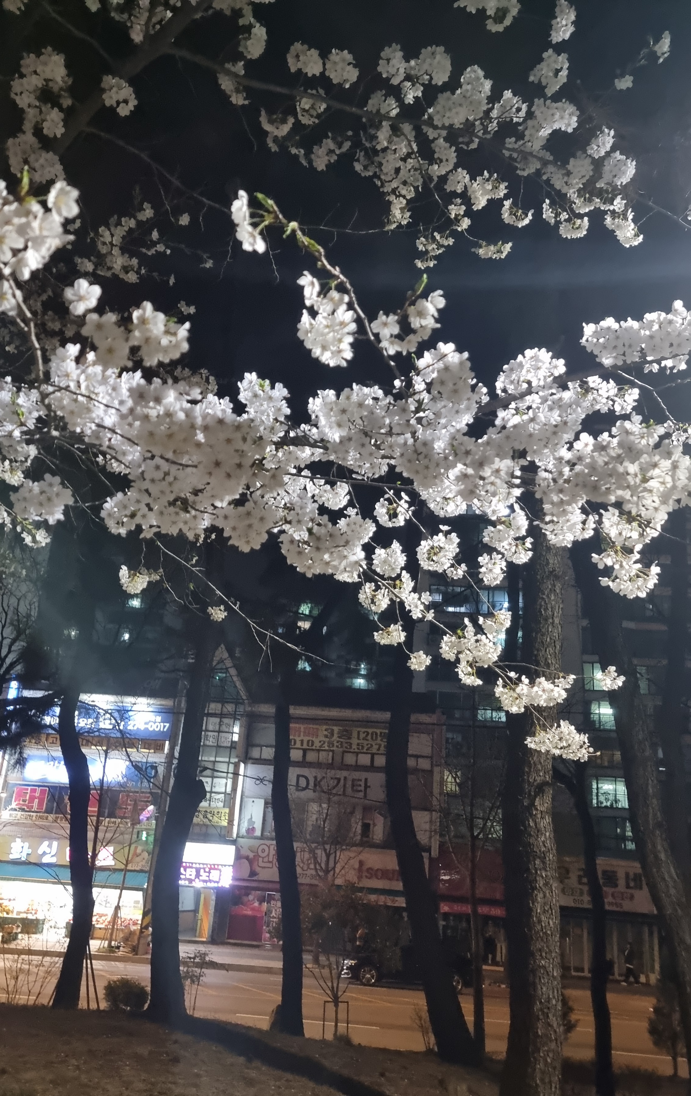 조명에 벚꽃이 유난히 환하게 다가옵니다